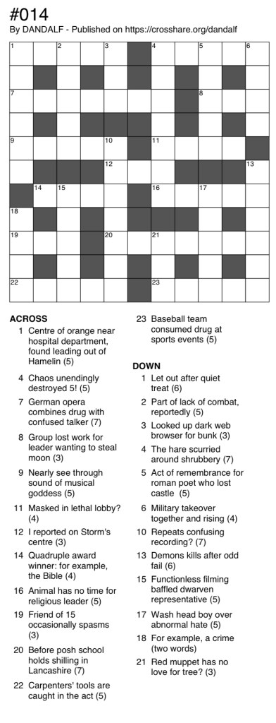 Here is the solution for Cryptic Crossword 1: