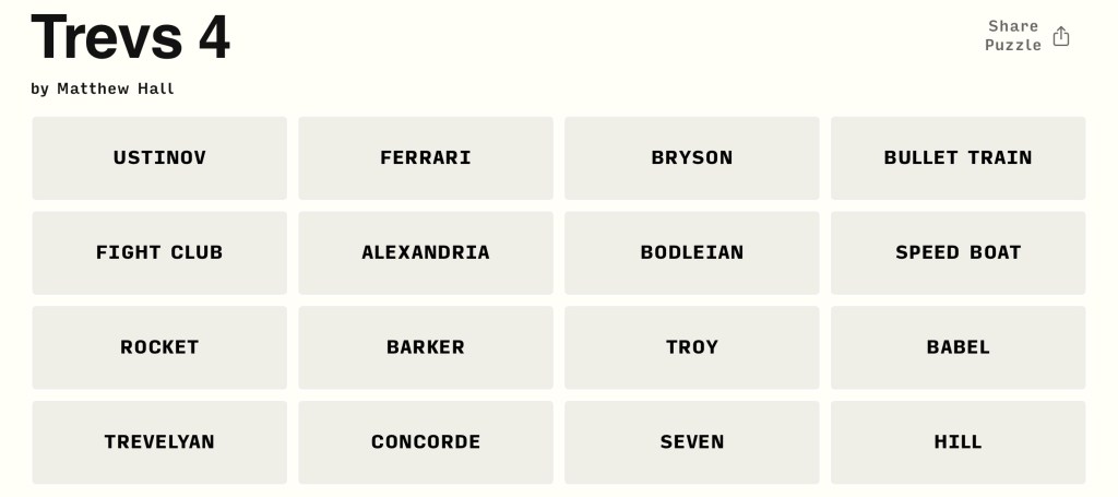 Matthew, the puzzles editor, has made another wall of connections with a Durham themed group within it.