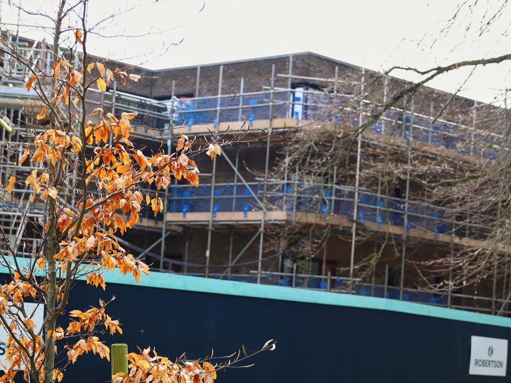 The building work has caused some disruption for students, as there is no longer a path through the whole of college. A and K Block can only be accessed through the outside door, past the Mash Room. The Library is also only accessible from the outside.