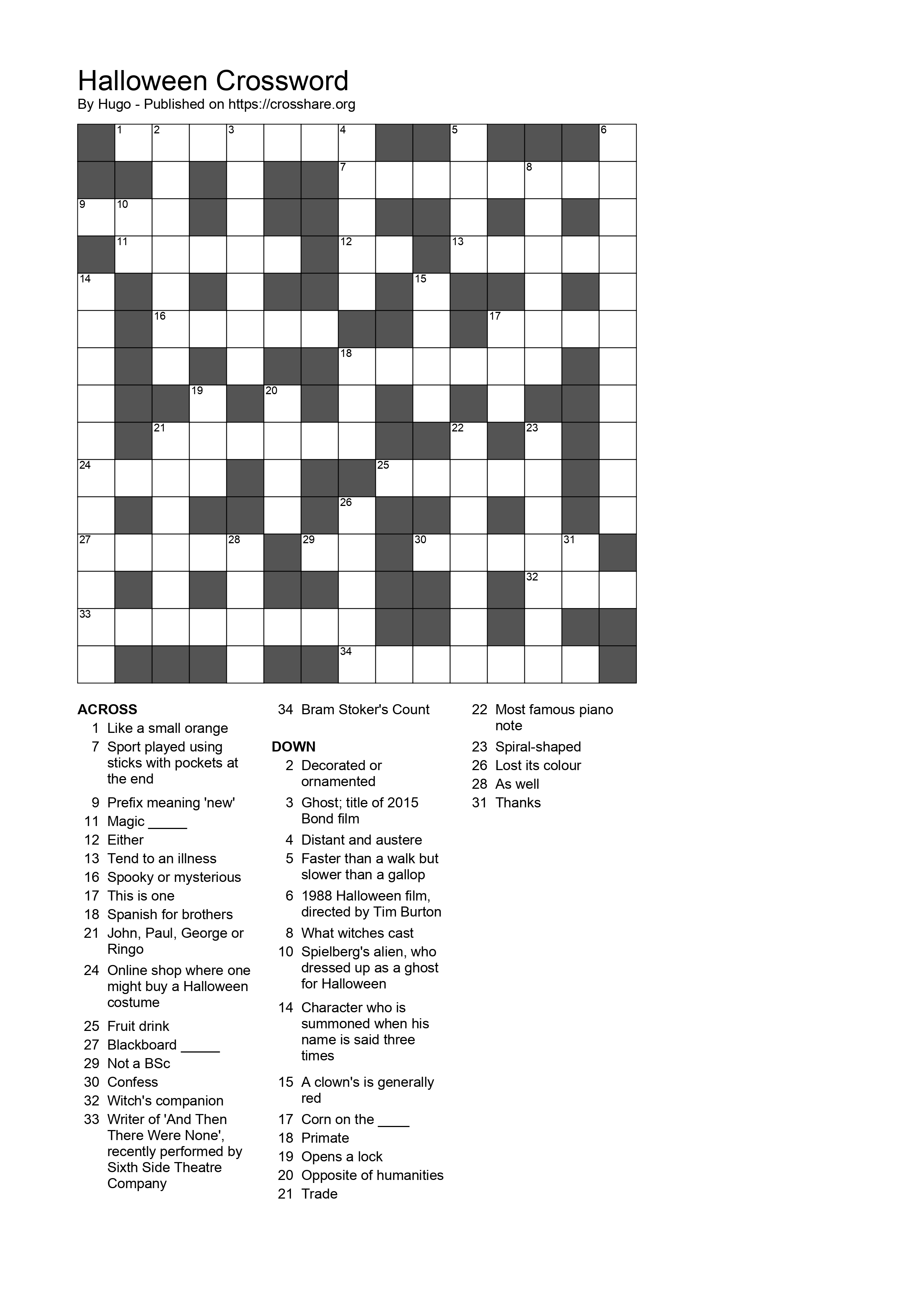 Puzzle Editor Hugo Windridge sets a Halloween-themed crossword.
